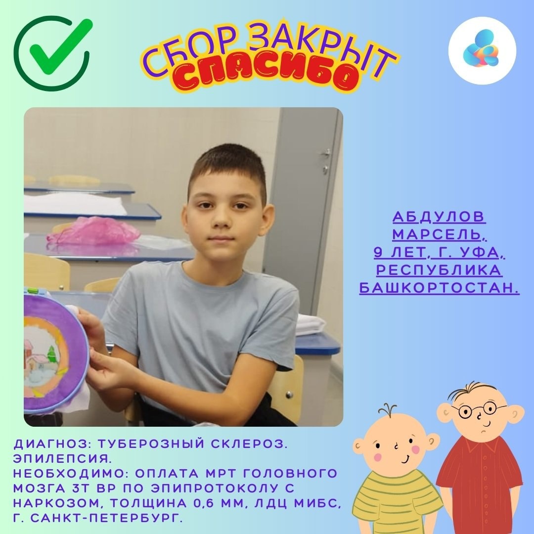 Ребята... Сразу видно, что праздники прошли хорошо - сразу два сбора завершены сегодня. Первый из них давний, практически с февраля, но... теперь все закончено и Кушиев Багдад пройдет наконец курс слухоречевой реабилитации. А второй буквально вчера и опубликовали - Марсель Абдулов из Уфы пройдет необходимые исследования, результаты которых помогут ему избавиться от эти-приступов навсегда! Спасибо всем, кто помог. А тем, кто еще хочет - это вам сюда https://stranadetyam.ru