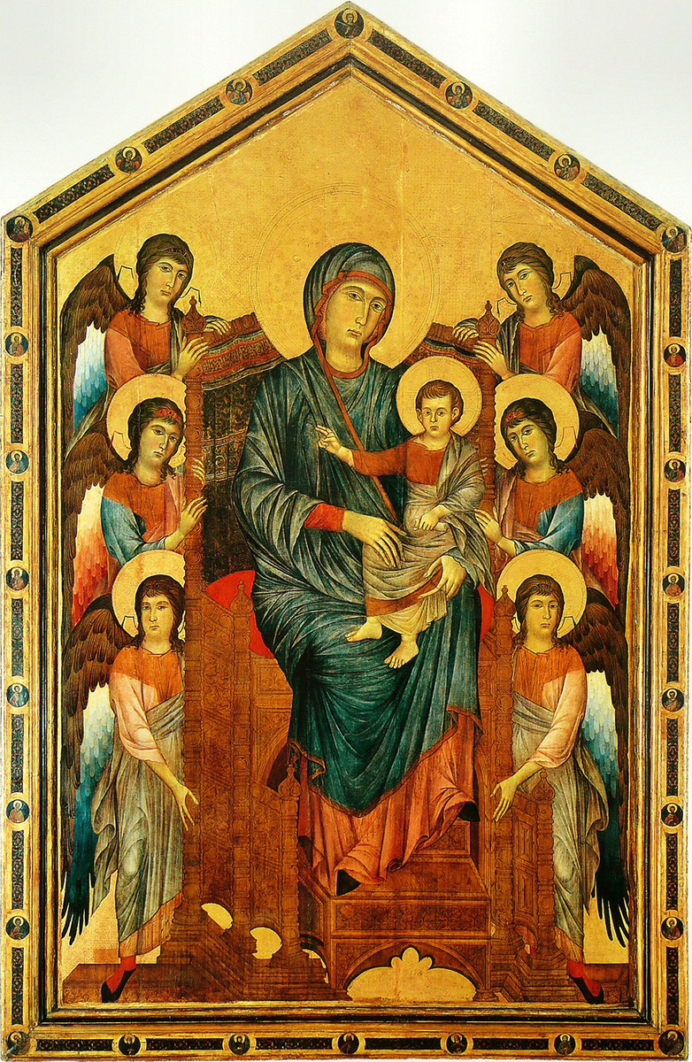 Чимабуэ «Мадонна с Младенцем и шестью ангелами на троне», ок. 1270 г.