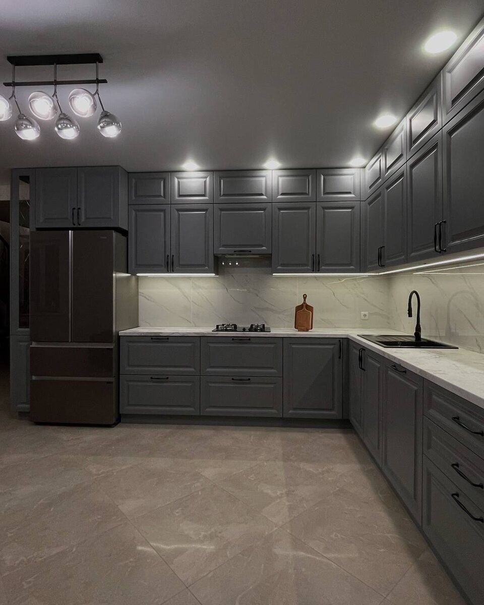 💣 Невероятный по красоте и дизайну кухонный гарнитур в классическом стиле. Красивая кухня – мечта любой хозяйки! А мечты должны сбываться Ведь кухня-это то место, где вы проводите большую часть своей жизни Кухня для наших заказчиков в частном доме: ✅Длина кухни 4030 * 4150мм ✅Фасады в матовой эмали с фрезеровкой (ral 7037) ✏стекло с гравировкой ✅Столешница Слотекс Calacatta Bianco 8251 ✏ стык столешниц - еврозапил ✅Фурнитура австрийской фирмы Blum ✏ система выдвижения LEGRABOX ✅Врезная подсветка с сенсорным выключателем ✏ волшебный уголок Vauth-Sagel COR Fold (Wari Corner) ✏ ведро для распашного фасада Vauth-Sagel ENVI Single 💰Стоимость кухни в данной комплектации: 459800р Хотите рассчитать стоимость такой кухни по Вашим размерам❓ 📩Присылайте проект или размеры кухни нам в сообщения А также записывайтесь на замер ☎️ 89278821585 💬 @kuhni_geometria