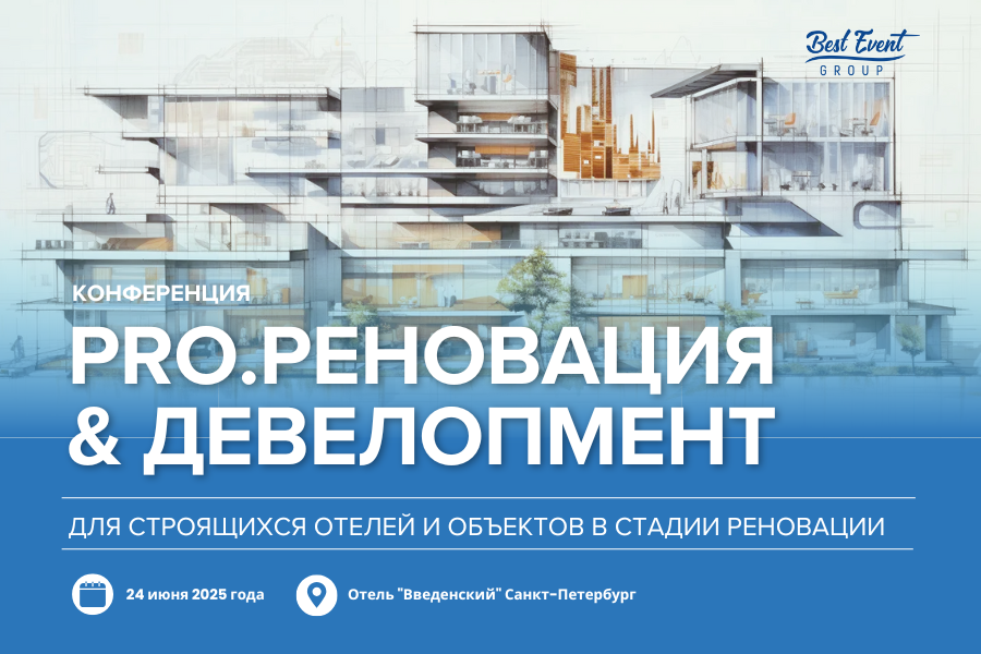 Компания Best Event Group в третий раз проведет конференцию «PRO.Реновация & Девелопмент». Мероприятие состоится 24 июня в двух конференц-залах отеля «Введенский». На конференции «PRO.Реновация & Девелопмент» будут обсуждать важные аспекты обновления гостиничных проектов всех категорий. В условиях растущей конкуренции и постоянных изменений в индустрии гостеприимства, качественное обновление объектов становится не просто желанием, а насущной необходимостью. Конференцию откроет круглый стол «Современный отельный рынок. Строительство и реновация. Что делать?» с участием Андрея Ткачева, генеральным директором отеля «Введенский», Вадима Прасова, управляющим партнером УК «Альянс Менеджмент», Андрея Петелина, генеральным директором УК «Сититель» и генеральным директором отеля «Санкт-Петербург». Эксперты расскажут о текущей ситуации на рынке и дадут прогнозы ее развития. Деловая программа мероприятия представлена в двух форматах: выступления спикеров и сессия «Отельный девелопмент». Темами л