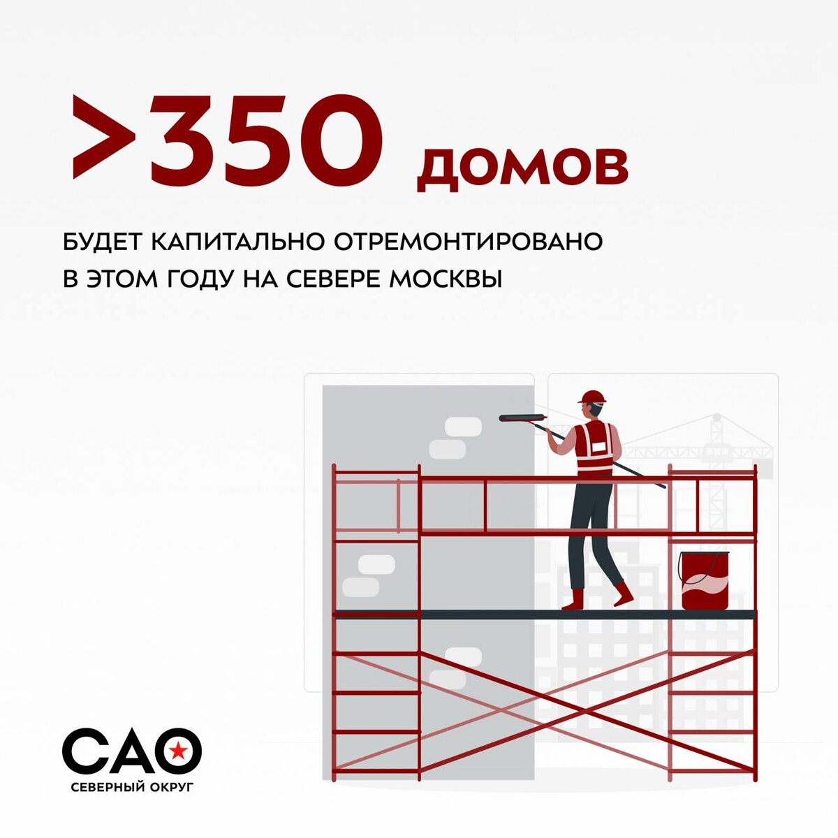🏢 Более 350 домов будет капитально отремонтировано в этом году на севере Москвы В этом году на севере столицы ведутся работы по капитальному ремонту в 371 доме. В работе — 1 125 систем, включая: ⭕️замену систем водоснабжения и водоотведения ⭕️обновление крыш и подвалов ⭕️капитальный ремонт подъездов ⭕️модернизацию стояков и магистралей горячего водоснабжения ⭕️восстановление мусоропроводов и фасадов ⭕️ Уже завершены работы по 165 системам. Московская программа капитального ремонта – один из самых масштабных проектов модернизации жилья в России и в мире. Программа стартовала в 2015 году и рассчитана до 2044 года. 📲 Узнать когда будут проведены работы в вашем доме можно здесь. 🖥 Подписывайся – Префектура САО #САО #Москва #Северныйокруг