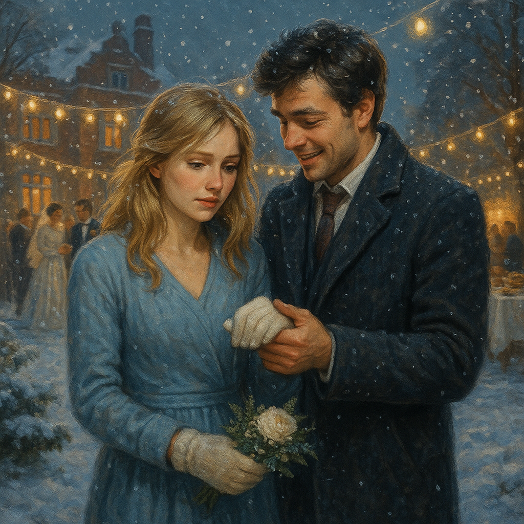 Игорь, поправляя галстук, стоял у входа, чувствуя себя не в своей тарелке. Свадьба была грандиозной — гирлянды, пироги, смех, — но он пришёл ради Лизы. Их встреча на выставке, её поддразнивания, её шарф в его руках — всё это кружило голову. Он не знал, почему она здесь, но её приглашение было как обещание. Он заметил её на танцполе, в голубом платье, её браслет сверкал под люстрой. Сердце заколотилось, но он замер, вспоминая, как она ускользнула в Лондоне.