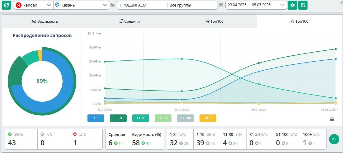 Клиника остеопатии из Казани обратилась к нам после выступления на конференции с типичным запросом: 📊 Мы предложили бесплатный тест-драйв быстрого SEO — на неделю, всего 3 страницы, 44 запроса. Без доступа к CMS. Даже без смены метатегов. — Видимость сайта: 13% — В ТОП-10: 11 запросов (25%) — В ТОП-3: 4 запроса (9%) — Видимость: 58% — В ТОП-10: 39 запросов (89%) — В ТОП-3: 32 запроса (73%) ❗️ Без редизайна. Без обновления контента. Только поведенческие факторы и наши технологии. Если вы устали сливать бюджет и ждать годами результата, обратитесь к нам. Мы покажем вам рост — не на словах, а в цифрах.