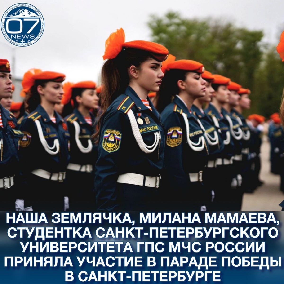 Милана Мамаева, выпускница первой школы села Исламей, ныне студентка Санкт-Петербургского университета ГПС МЧС России, с гордостью прошла в торжественном параде на Дворцовой площади в Санкт-Петербурге, демонстрируя свою преданность долгу и будущей профессии.