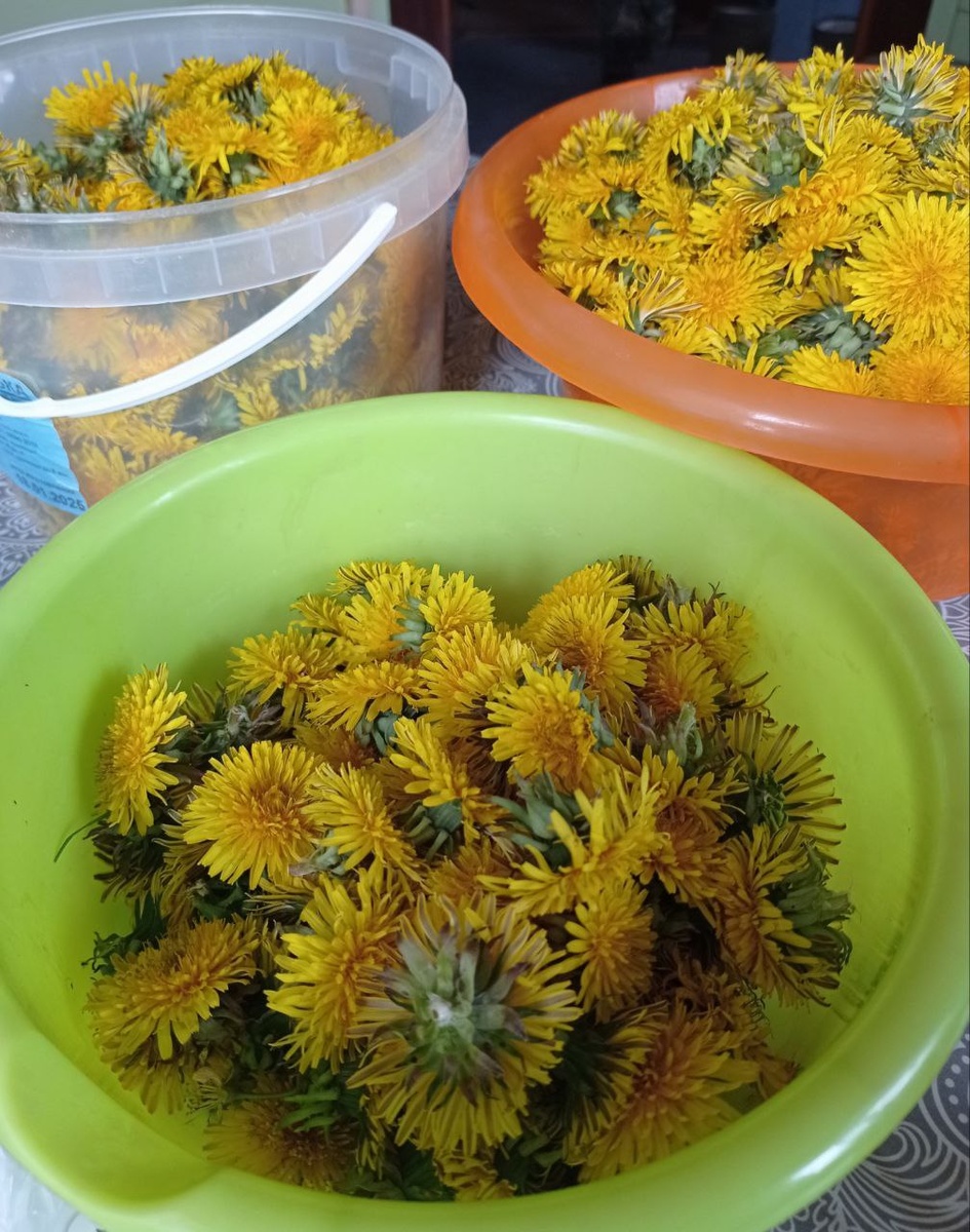 Сначала мы в три пары рук набрали одуванчиков. Только цветущие головки, ничего лишнего... Считать не стали.