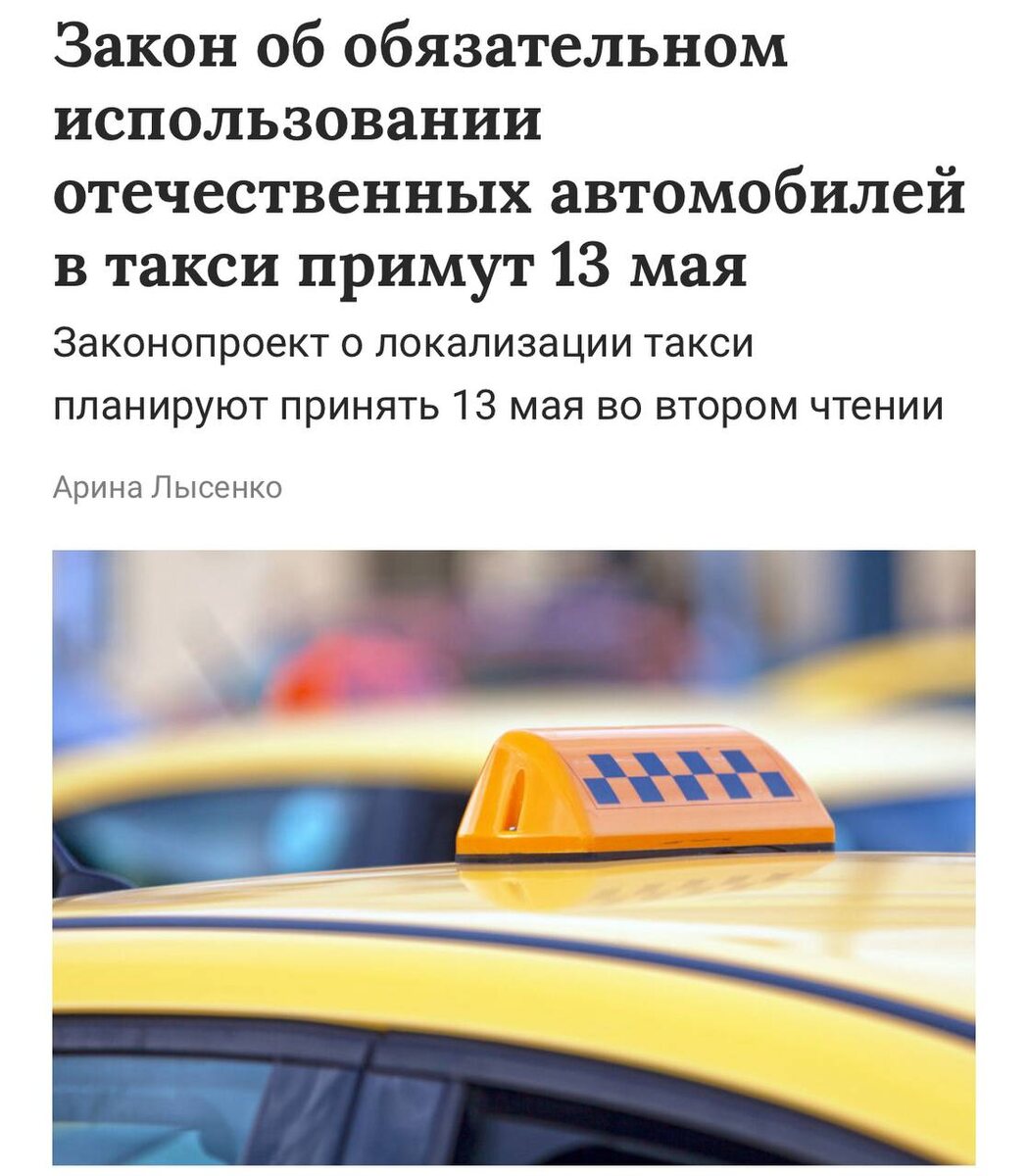 Закон о запрете иномарок в такси могут принять уже завтра.