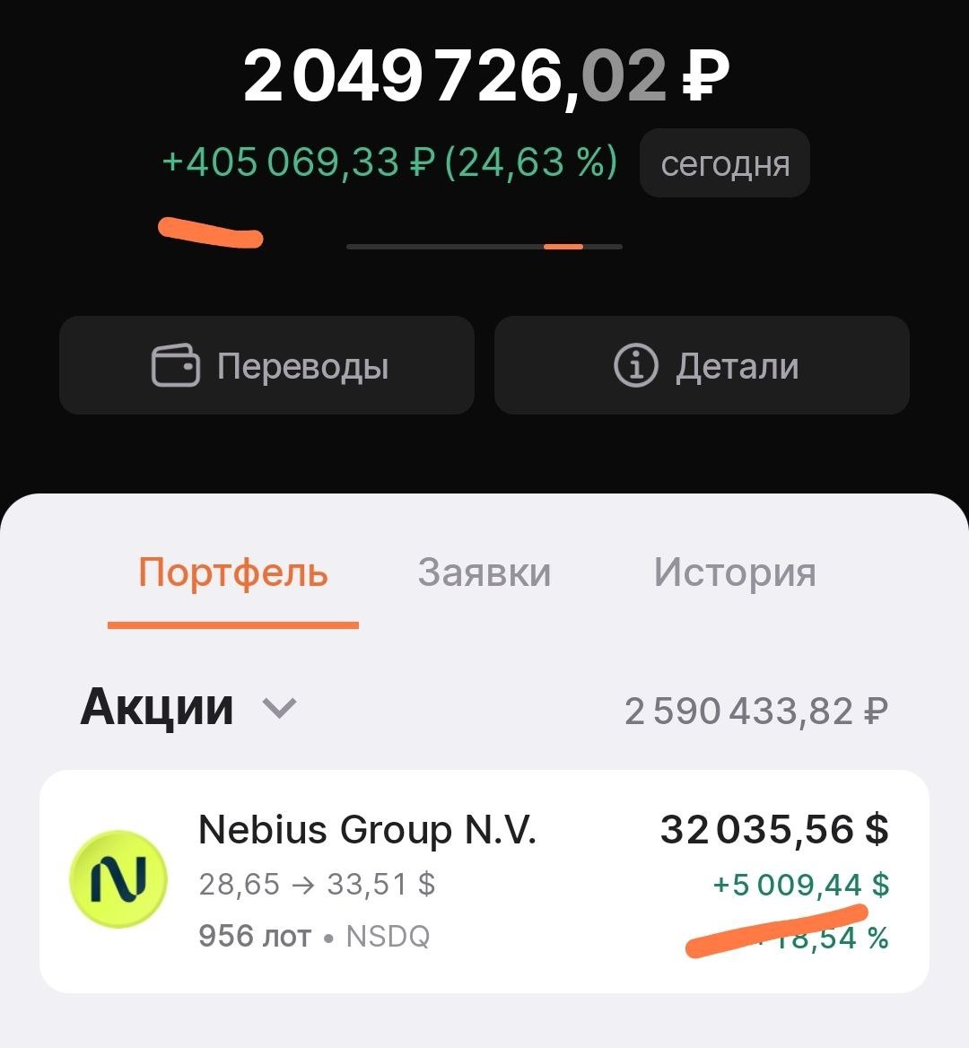 Еще немного, про удержание позиции. Что вы видите? 2+ млн счет. +400 тыс сегодня в рублях, или +5 тыс долларов. Круто? А то. Сам не нарадуюсь. 😁 Да, такой результат дает максимальный риск. В данном случае концентрация в одной бумаге, да еще и плечо. Но. Несколько недель назад я видел такие же цифры, только в день. Попробуйте представить себе дневной убыток 400 тыс. Или 40% вашего счета (одного из счетов). Это я все пишу по психологии. Что психология, один из факторов успеха на рынке. Может самый главный. Почему я не только не поседел, но и докупал? 1. Этот миллион мысленно я списал год назад в Яндексе😂, хотя и кусались локти, когда котировка ехала с 50 ти на 20. 2. Я вновь и вновь открывал отчеты, цифры, и начинал прикидывать как у этой компании дела. И с каждым разом, мне хотелось все больше и больше владеть этой компанией. То есть цифра, точнее котировка, ушла на второй план. Первый план - у меня есть акции этой компании. Я совладелец. Это важно. Сколько это стоит