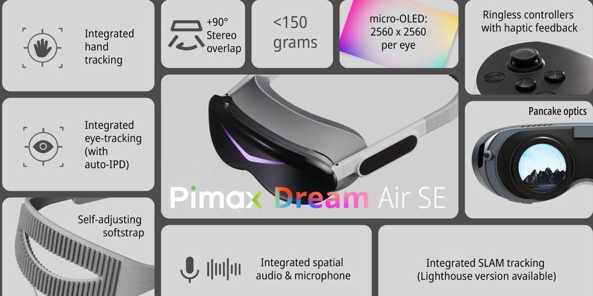 - Pimax Dream Air SE — доступная версия Dream Air с экранами 2K на глаз за $1199.