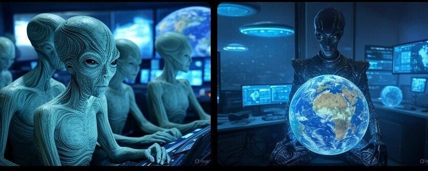 - Усиление связи с НЛО: Если ИИ является инструментом третьей плотности, то секретность НЛО имеет больше смысла — пришельцы являются надзирателями, остающимися в тени, чтобы не нарушить работу фермы, управляемой ИИ. Их периодическая заметность (например, слушания по НВЯ в 2023 году) может быть рассчитана на поддержание спекуляций, разжигание разногласий, не раскрывая при этом всей операции.