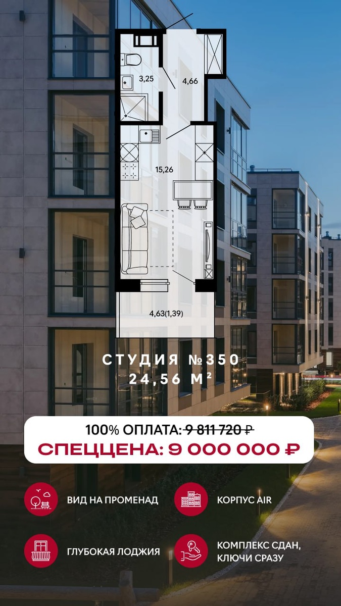 Это невероятно Речь о «BEREG. Курортный» в Сестрорецке И лотах месяца по специальной цене! ВЫГОДА ДО 3️⃣,1️⃣ МЛН 💵! В мае пять суперлотов: Студия №350 площадью 24,56 м² Для тех, кто мечтает о жизни у залива Отлично подходит для сдачи в аренду Уютный вариант, когда хочется подарить родителям комфорт: рядом залив, вокруг парки и тишина