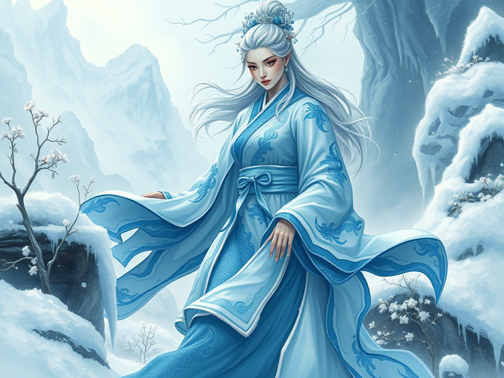- Женственность: В китайской традиции Снежная дева часто воплощает иньскую энергию (阴气), связанную с луной, водой и тайной.