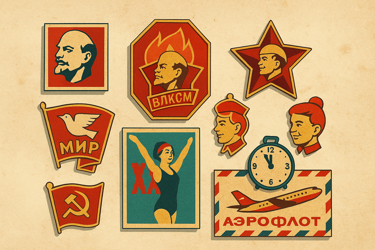 - Значки с ограниченных мероприятий (фестивали, выставки, олимпиада-80)