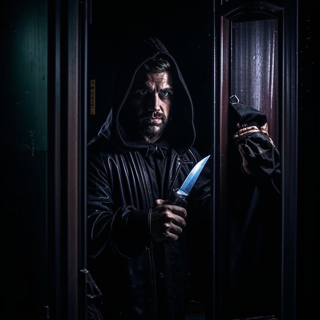 Внезапно наступившая тишина в старом особняке была нарушена лишь мерным скрежетом стали о ткань. Виктор, высокий мужчина с усталым лицом и глубокими морщинам под глазами, стоял в длинном темном коридоре, освещаемом лишь слабым светом из-за мутных окон. Его взгляд был устремлен вниз, на нож, который он яростно вытирал о свой потрепанный кожаный плащ, оставляя на нём тёмные следы. В его движениях было столько злобы и напряжения, что казалось, будто сама атмосфера вокруг него сгущалась.