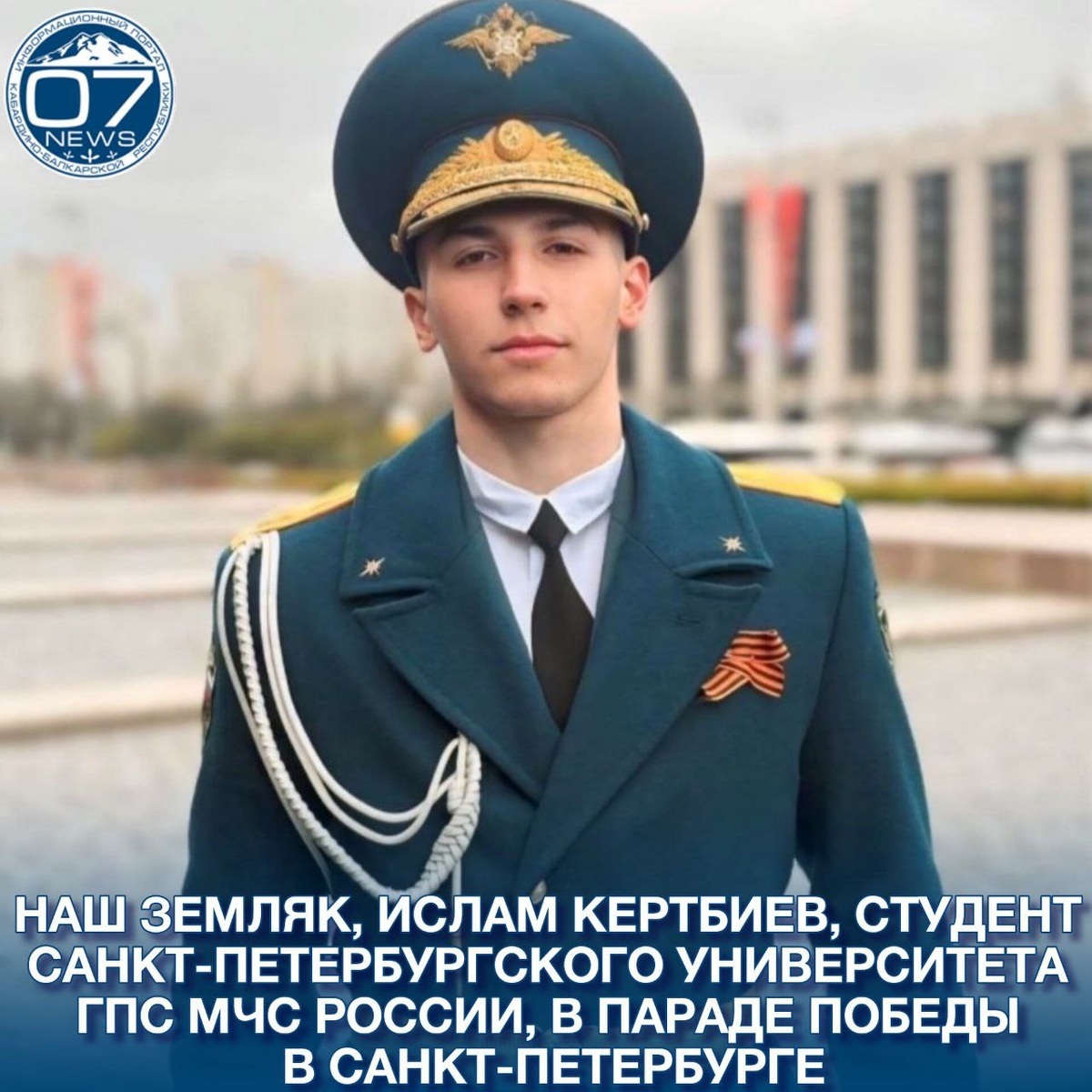 Ислам Кертбиев, выпускник школы сельского поселения Куба-Таба, ныне студент Санкт-Петербургского университета ГПС МЧС России, с гордостью прошел в торжественном параде на Дворцовой площади в Санкт-Петербурге, демонстрируя свою преданность долгу и будущей профессии.