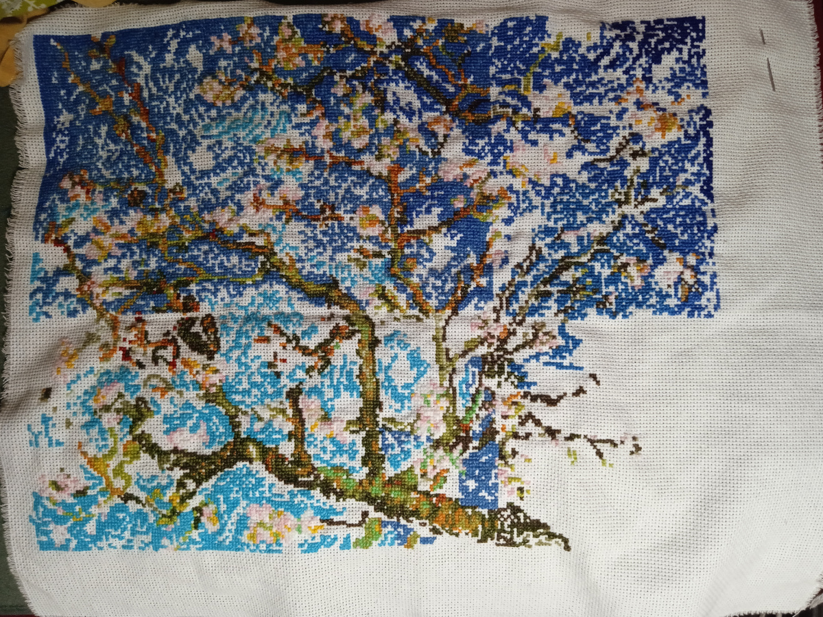 Здравствуйте, уважаемые читатели канала. Хочу вам сообщить, что закончила уже больше половины вышивки, которая называется " Цветущий миндаль". Можно даже сказать, что она близка к финишу. И что ее завершения остались считанные дни. Я начала ее еще 1 января, но постоянно прерывалась на другие работы. В конце апреля я уже капитально начала ее шить. Сейчас середины мая, я уже почти ее закончила. До июня нужно точно успеть. А теперь к другому. Я пытаюсь похудеть. Я немного набрала вес, и сейчас тщетно пытаюсь похудеть. Я знаю, что смогу вернуться в прежний вес, стоит только мне начать.... ходить по 8 часов в день. Именно таким способом я худела несколько лет назад, в 2018. С тех пор я и набирала, и скидывала. Но всегда одним и тем же способам. Но.. Сейчас я плотно и крепко занята работой большую часть дня, в отличие даже от 2019 года. В основном работаю над статьями, но и вечером тоже сижу, вышиваю. Так что уже тут из двух выбирать. Либо ты толстая и с деньгами, либо худая и не работаеш
