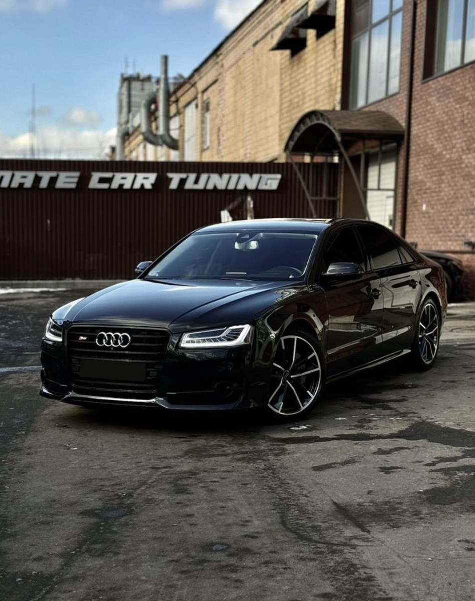 Audi S8 — это настоящий символ сочетания премиального комфорта и высочайших технических характеристик. Эта модель отлично подходит как для динамичных поездок, так и для комфортного передвижения по городу. Какие бывают комплектации Audi S8? В настоящее время Audi S8 предлагается в нескольких комплектациях, каждая из которых отличается своим оснащением и набором опций: • Audi S8 Premium — базовая версия с высокотехнологичным оснащением, включая панорамную крышу, адаптивные светодиодные фары и премиальную аудиосистему Bang & Olufsen. • Audi S8 Premium Plus — расширенный набор оборудования, сюда входят дополнения по безопасности, расширенный пакет мультимедиа и кожаный салон с функцией вентиляции и массажа. • Audi S8 Black Optic — спортивный пакет с акцентом на дизайн: черные декоративные элементы, уникальный дизайн колесных дисков и спортивные настройки подвески. Технические характеристики Audi S8 оснащена мощным 4.0-литровым V8 с турбонаддувом, который развивает около 571 лошад