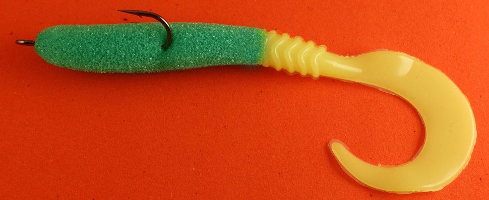 Пример: Приманка из EVА и поролона соединяется проволокой, что позволяет ей «играть» даже на паузе.