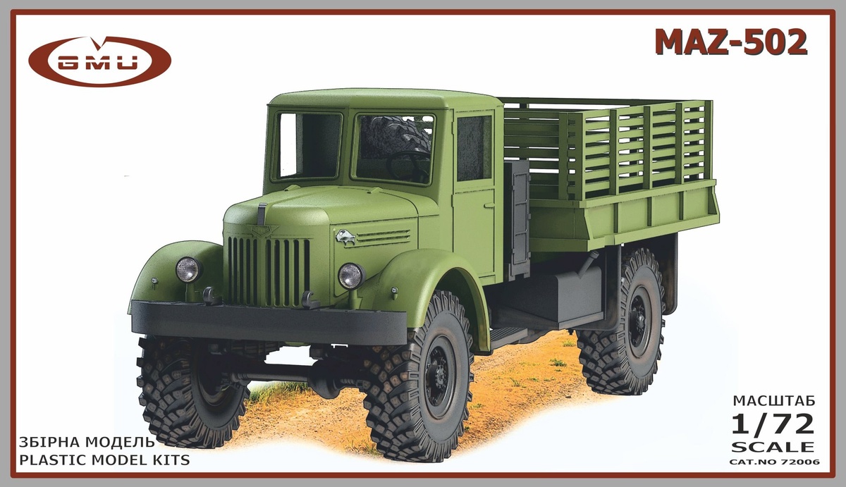 Днепропетровская GMU показала боксарт своей новой ЛНД-модели МАЗ-502 в масштабе 1/72: