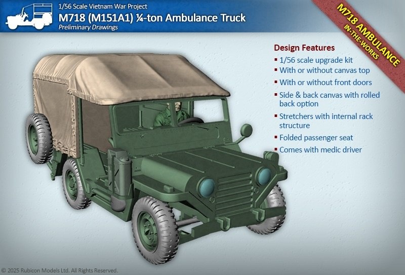Английская Rubicon Models выпустит модель американского санитарного автомобиля M718 времен Вьетнамской войны в масштабе 1/56
