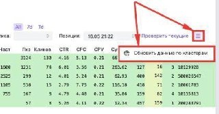 В WBRadar мы предусмотрели это. Для этого нужно нажать на кнопку «Обновить данные по кластерам». Мы рекомендуем производить эту процедуру на ежедневной основе. Тем самым вы минимизируете возможность отсутствия буста у себя в РК.