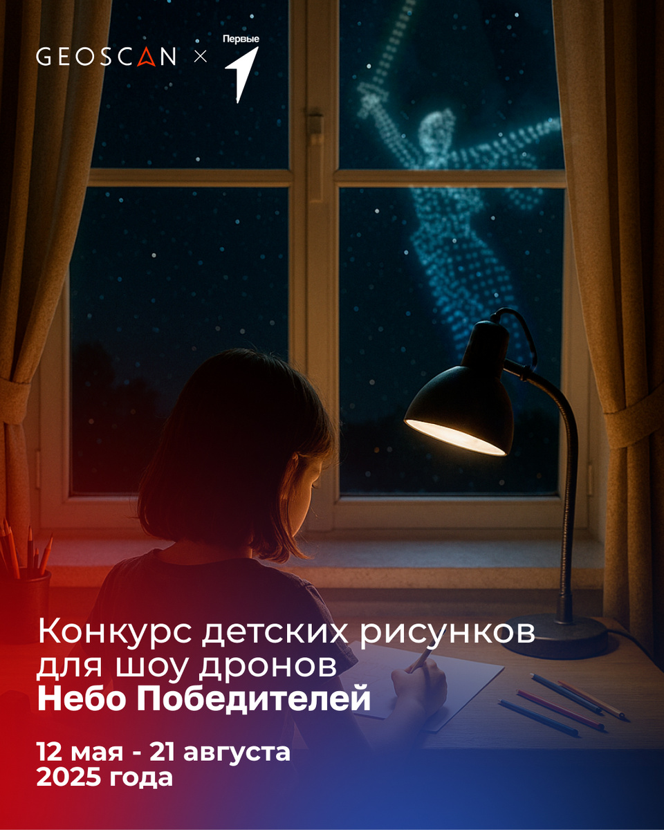 Объявляем старт конкурса "Небо Победителей" - первый в России конкурс детской анимации для шоу дронов! Память о подвигах наших героев должна жить не только 9 мая, а всегда! В год 80-летия Великой Победы Геоскан предлагает детям стать авторами торжественного шоу дронов! Кто участвует: дети 6-14 лет