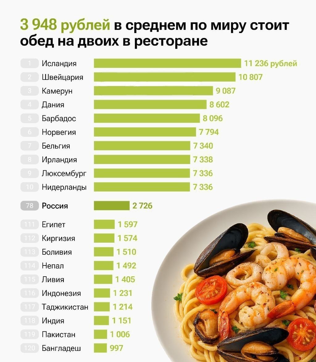 Индекс ресторанов показывает, что цены в России почти вдвое и втрое ниже европейских. @nemediatema