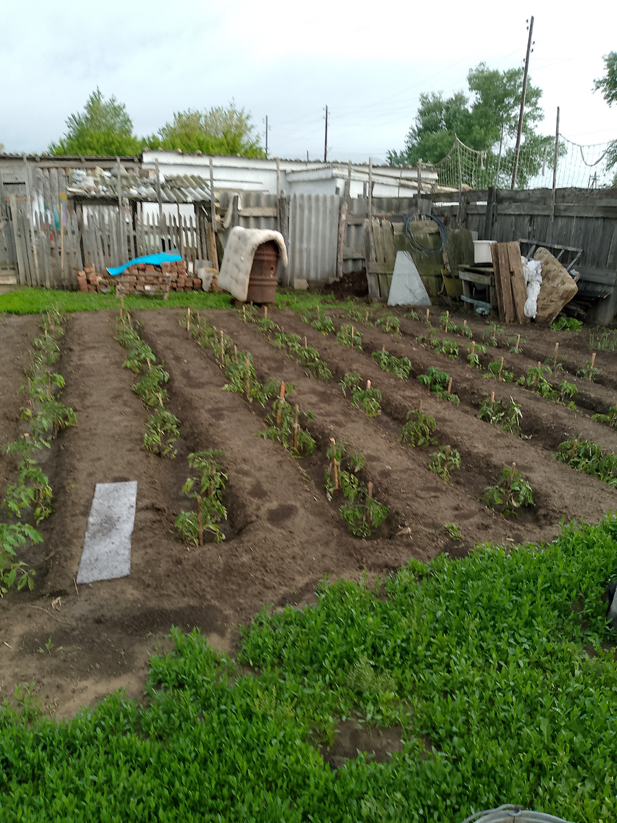 Здравствуйте всем .Добрый вечер.Мне почему то пишется хорошо,когда все дела сделаны и в доме тишина,поэтому стараюсь писать поздним вечером. Сегодня весь день шел дождь,вот немного моросит и перестанет, то ливнем кратковременным пройдется.Мы, конечно ,любим дождь,но только один день,на второй день он уже нам надоедает.Мы привыкли в сухости жить.Вообщем ,для нас май ,по нашим меркам ,прохладный и дождливый. Зато траве хорошо,ковром расстилается.Еще ничего не выросло ,а я третий день ,мотыгу из рук не выпускаю.Все равно не успеваю,трава растет с фантастической скоростью. Поглядела на свой огород,вся рассада ещё тоненькая,слабенькая и подумала ,что времена огорода ,похожи на нашу жизнь. Апрель - жизнь зарождается,трава пробивается,появляются первые ростки. Май-подростковый возраст,потому что вся рассада тоненькая,усиленно тянется вверх,как нескладный подросток. Июнь- юношеская пора.Растения набрали рост,опушились листьями,набирают бутоны,радуются солнцу,ветру и каждое утро улыбаются нам.