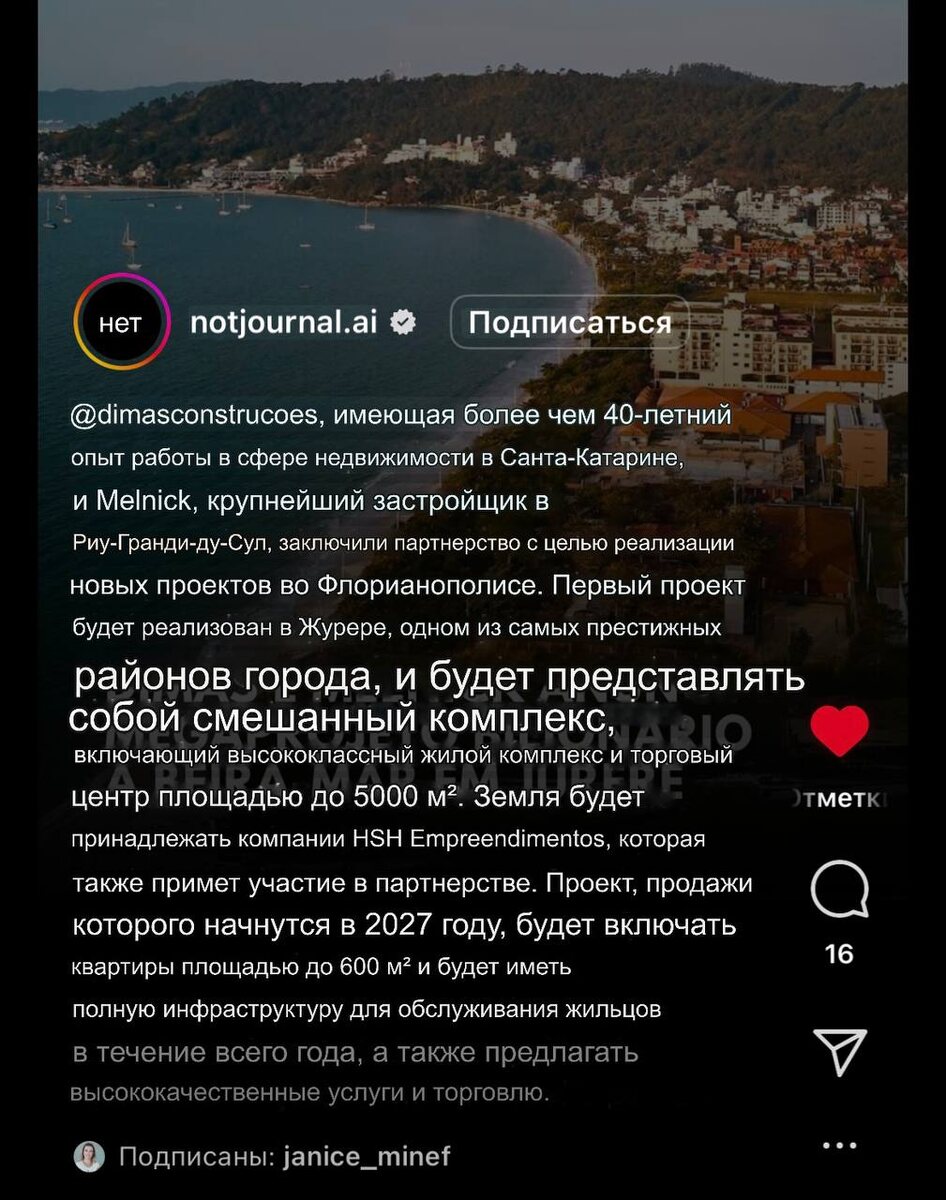 Реализация нового проекта в Jurerê, усилиями 2-х гигантских застройщиков.