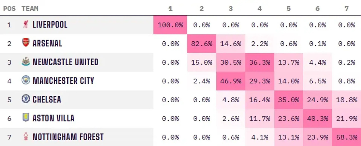 Аналитики отмечают, что судьба «Челси» по-прежнему находится в их собственных руках. Победы в оставшихся матчах против «Манчестер Юнайтед» и «Ноттингем Форест» гарантируют команде место в первой пятерке.