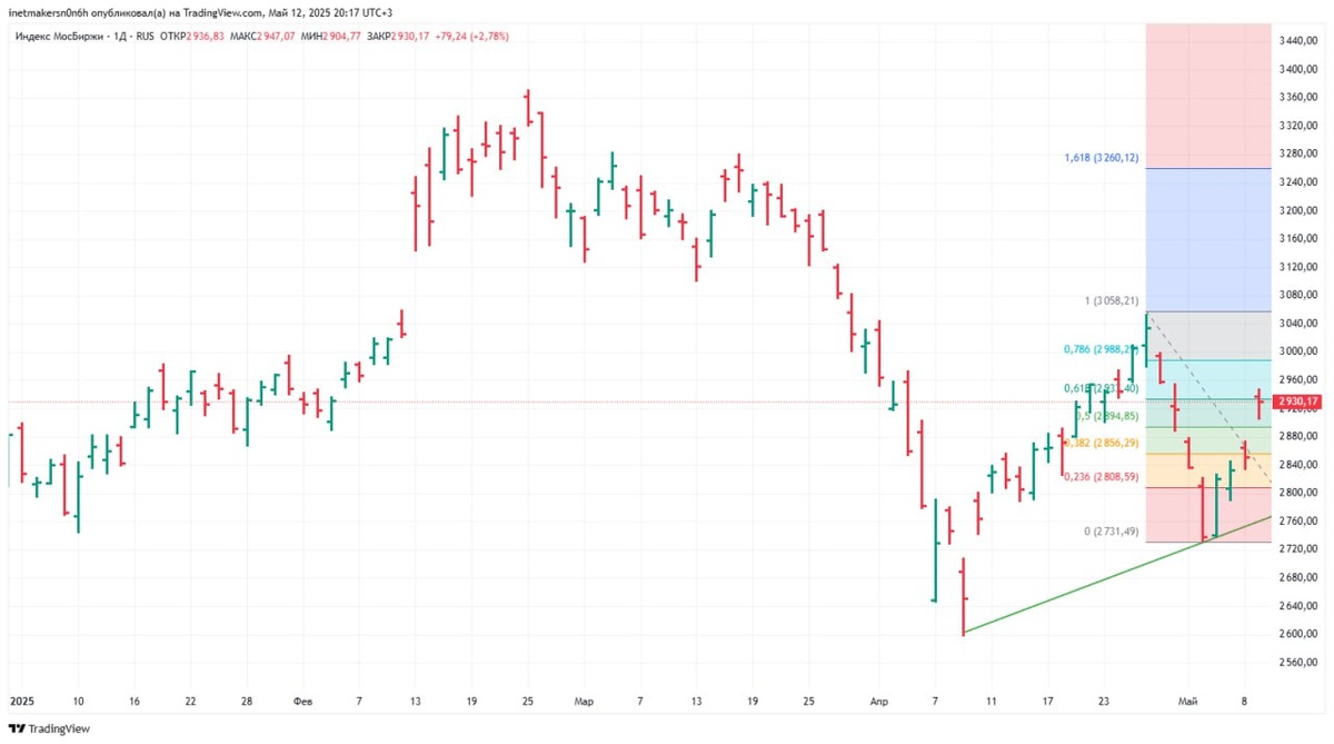 ❗️12 мая российский фондовый рынок вырос, индекс МосБиржи укрепился на 2,78% до уровня 2930,17.