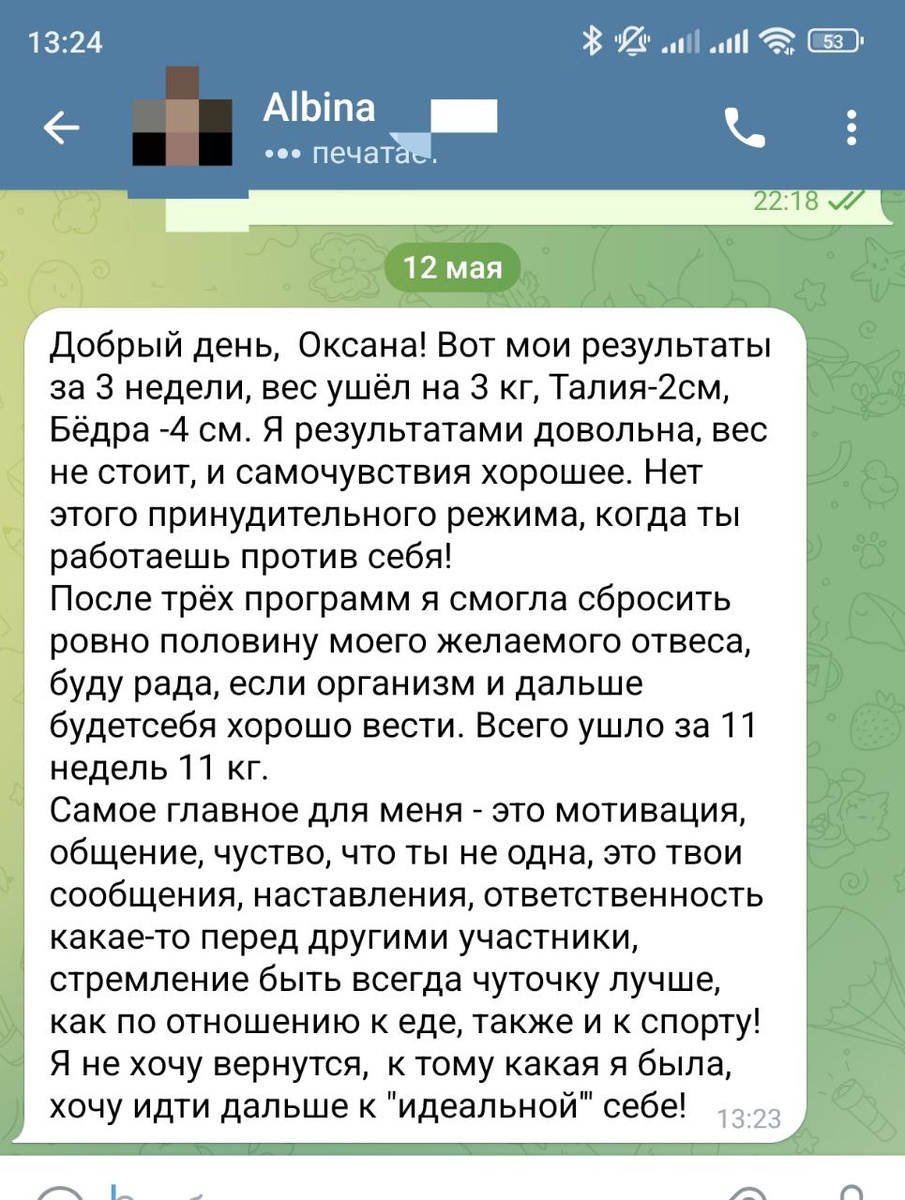Минус 11 кг за 11 недель! Такой результат получила участница трёх моих программ — спокойно, без жёстких ограничений и изнурительных тренировок. Мы шаг за шагом выстраивали питание, сон, отношение к себе, учились снижать уровень стресса и быть в контакте с телом. Прикладываю её отзыв — в нём благодарность, внутренний свет и уверенность. Это не просто про килограммы — это про перемены внутри. Если ты тоже хочешь пройти этот путь — присоединяйся к последнему набору программы "Худей легко". Старт — 19 мая. За подробностями пишите в личные сообщения https://t.me/galatok