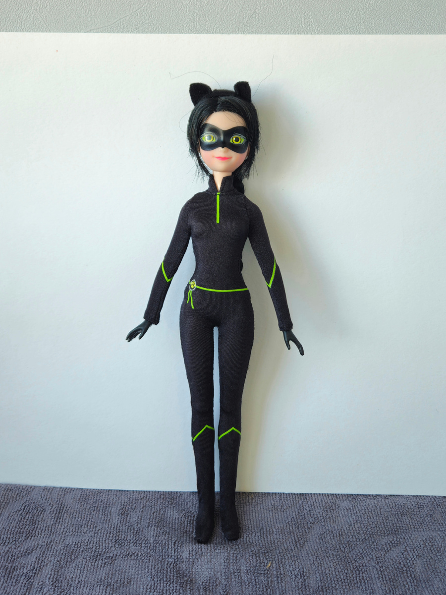 Я не могу назвать себя фанатом сериала Ледибаг, но все равно слежу за ним и знаю основные моменты. Хотя полноценно я посмотрела только первый сезон😆 Как девочка, выросшая на сериалах Винкс и Сейлор Мун, я больше всего люблю превращения, поэтому именно за ними я и слежу. И одним из моих самых любимых превращений стало появление Леди Нуар. Ну и поскольку, производитель мультфильмов еще и игрушки выпускает, то я приобрела себе свою собственную Леди Нуар. Когда я ее только купила, то совершенно не собиралась ее переделывывать. Считала ее скорее фигуркой, которую я поставлю на полку и буду любоваться. Но, перебирая свою коллекцию я поняла, что все же хочу сделать этой кукле более приемлемую прическу. Ее дохлая косичка вызывала у меня вопросы еще в момент приборетения, с учетом цены в 15 долларов. Но тогда у меня не было времени заниматься ее прошивкой. А сейчас время пришло. Но я действительно не понимала масштаб трагедии, пока не начала детально изучать ее прическу. Оказыватся, уши в вид