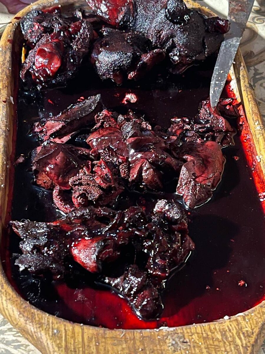 - Ассорти из порубленных губ и копыт оленя, заправленных уже подкисшей кровью
