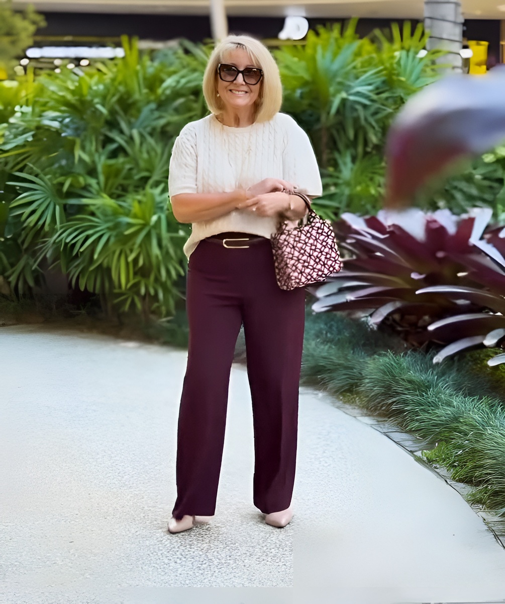 Кто сказал, что женщина, перешагнувшая 60-летний рубеж, должна забыть о стиле? Наша сегодняшняя героиня своим безупречным вкусом и красивыми нарядами покоряет сердца модниц по всему миру. Ниже 12 удачных идей на весенне-летний сезон. Фактурный джемпер с короткими рукавами отлично ладит с брюками со стрелками, телесными «лодочками», аксессуарами. Образ выглядит в меру строго и очень элегантно. Оливковый цвет успешно освежает зрелую внешность. В качестве дополнений блогер использовала молочную майку, туфли, сумку. Пояс и утонченные украшения ничуть не выбиваются из весеннего комплекта. Черный монохром не помешает «разбавить» бордовой кофтой. Сумка с пестрым принтом добавляет ансамблю динамичную нотку. Не хуже кофта смотрится с летними брюками белого цвета. Кремовые туфли создают эффект «бесконечных» ног, стройнят свою обладательницу. В возрасте 60+ не стоит отказываться от многочисленных оттенков розового. Пастель обладает выраженным омолаживающим эффектом. Еще один монохромный наряд на