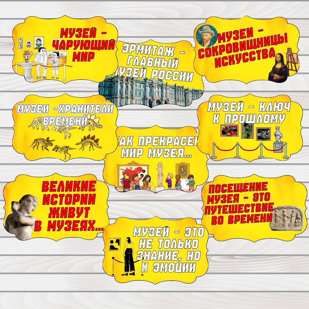 Музеи - это места, где история оживает и становится доступной каждому. "Международный день музеев" призван привлечь внимание к важной роли музеев в сохранении культурного наследия. Этот день стимулирует людей посещать музеи и погружаться в удивительные и богатые историческими событиями коллекции. В наборе 9 речевых облачков с тематическими надписями. Хотите разнообразить свои уроки или праздничные мероприятия? Присоединяйтесь к сообществу VK - Уроки Легко | Рабочие листы и шаблоны для печати - и не упустите возможность обновить свой арсенал шаблонов!