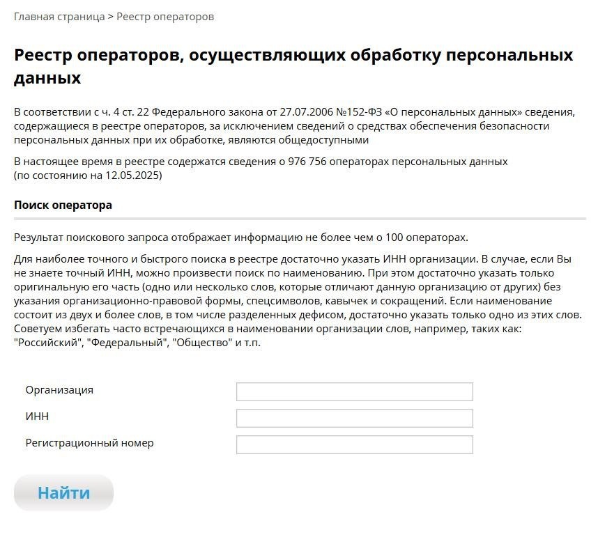 С 1 июня 2025 года впервые будет установлена высокая административная ответственность для индивидуальных предпринимателей и юридических лиц, отсутствующих в реестре операторов персональных данных. Для внесения сведения об ООО или ИП в реестр операторов персональных данных требуется направить в Роскомнадзор уведомление о начале обработки персональных данных. Если до 2022 года Федеральный закон №152-ФЗ от 27.07.2006 г. "О персональных данных" позволял многим предпринимателям не направлять рассматриваемое уведомление, то есть содержал список исключений. То после внесения изменений в ФЗ-152 список сократился с 9 до 3 исключений, когда предприниматель вправе осуществлять обработку персональных данных без уведомления Роскомнадзора. К персональным данным относится любая информация, относящаяся к физическому лицу: номер телефона, электронная почта, ФИО, ИНН, СНИЛС, паспортные данные и др. Пример 1. Индивидуальный предприниматель заключает трудовые договоры с физическими лицами. Соответстве