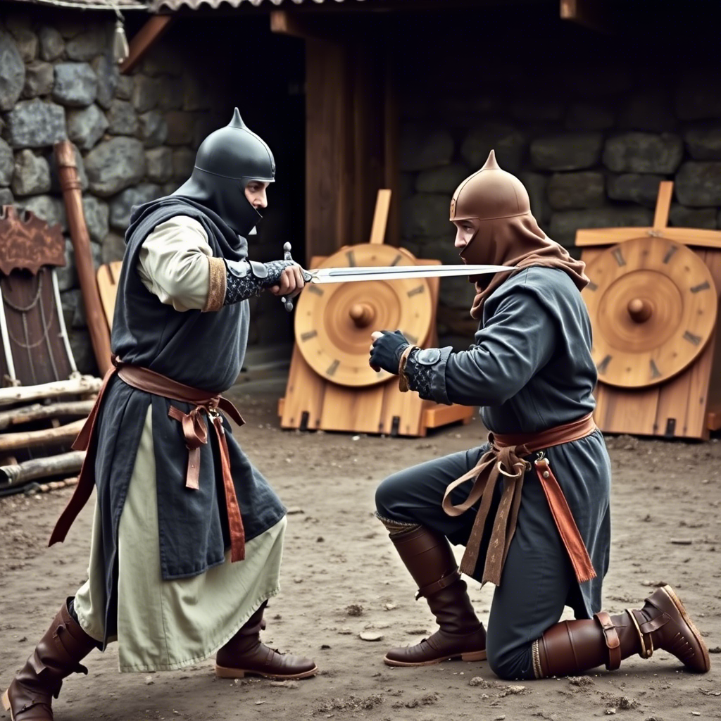 И вот он встал на колени - я направил его меч на него. Бой был окончен. Все аплодировали - такое зрелище для всех устроили. Я протянул руку, чтобы поднять его - он отмахнулся и встал сам. Наверное, расстроился. Я заметил опять этого воина, который приходил ко мне в тюрьму - что-то он явно от меня хочет. Продолжая тренировки, закончился ещё один день. Вернувшись в камеру, я вспоминал прошедший спарринг. "О-о, это было здорово." Я анализировал, как ещё можно было его победить. На ум приходило много вариантов, но нужно их все опробовать. Уже почти проваливаясь в сон, меня разбудил стражник, сказав, что меня нужно привести к начальнику. Я надел рубаху и пошёл в сопровождении одного воина. Приведя к комнате, он кивком дал мне понять, чтобы я заходил. Постучав, я сказал: "Захожу." За дверью я услышал громкий смех нескольких людей. Открывая дверь, я увидел, что начальник и его приближённые выпивали и кушали закуски. Увидев меня в дверях, он рукой позвал меня к себе. "Мне всё рассказали про т