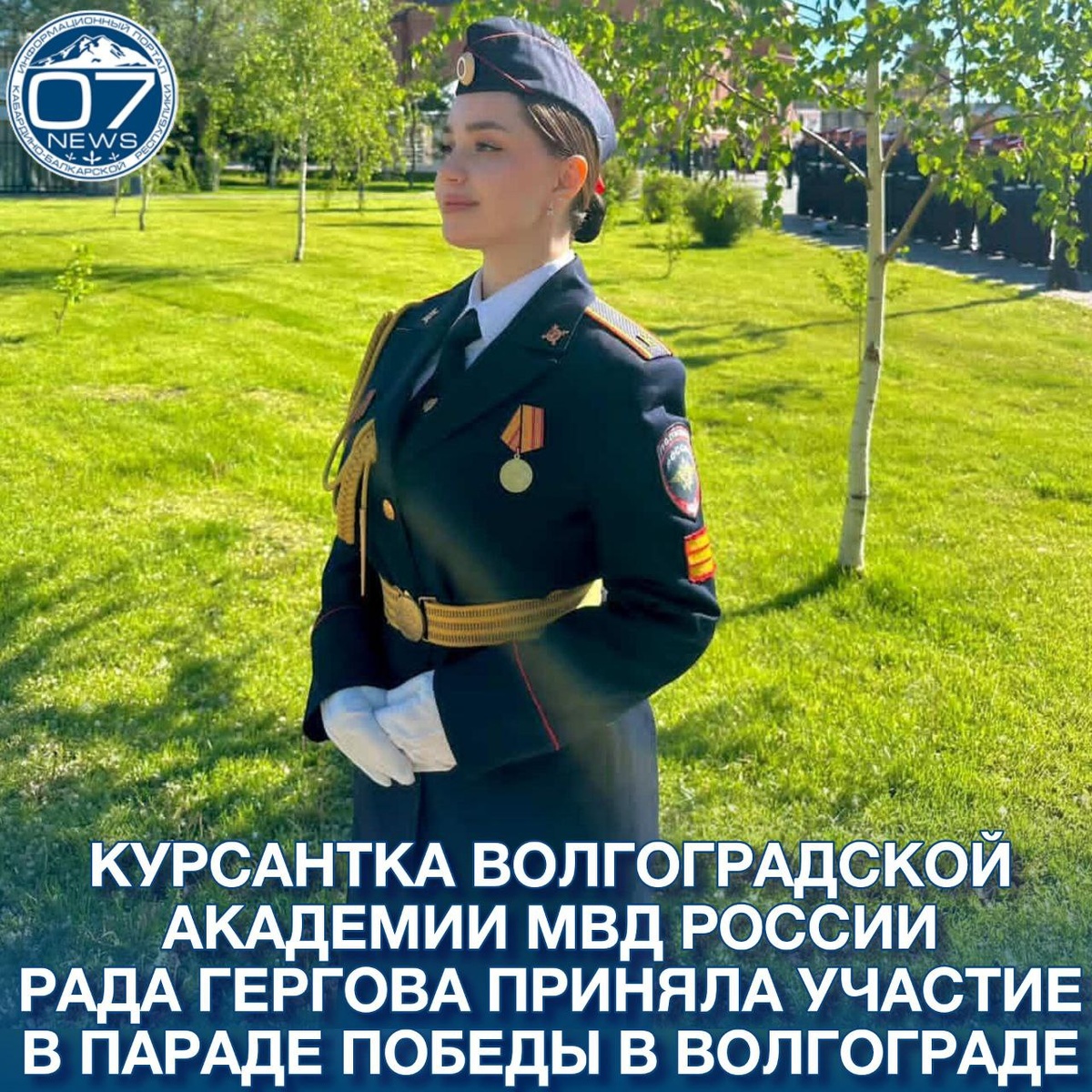 Наша землячка, курсантка 3 курса Волгоградской академии МВД России, выпускница МОУ СОШ 4 с.п. Исламей, Рада Гергова приняла участие в параде Победы в Волгограде. Желаем успехов!