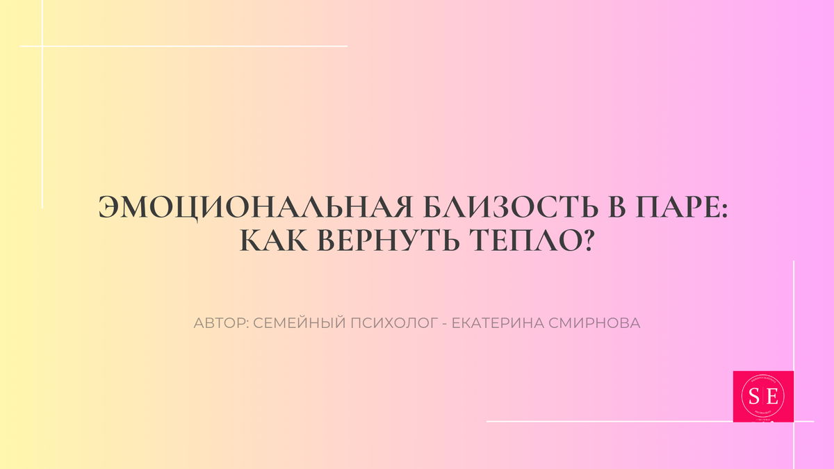 Автор: Екатерина Смирнова — семейный психолог, эмоционально-фокусированный терапевт, опыт с 2017 года Эмоциональная близость — это невидимая ткань, которая скрепляет отношения. Именно она делает отношения не просто совместным бытом, а поддерживающим и тёплым пространством. Однако со временем даже самые крепкие пары сталкиваются с отчуждением, холодом и чувством одиночества рядом с близким человеком. Почему это происходит и как вернуть утраченное тепло? Эмоциональная близость — это ощущение безопасности и принятия в отношениях. Это способность делиться своими переживаниями, чувствами, страхами и мечтами с партнёром и быть услышанным без критики и осуждения. Это про «мы» вместо «я против тебя». Исследования доктора Сью Джонсон, основательницы Эмоционально-Фокусированной Терапии (ЭФТ), показывают, что эмоциональная близость формируется через три базовых компонента: По данным исследований Института семьи Готтманов (США), одна из главных причин развода — не измена, а эмоциональное отдаление