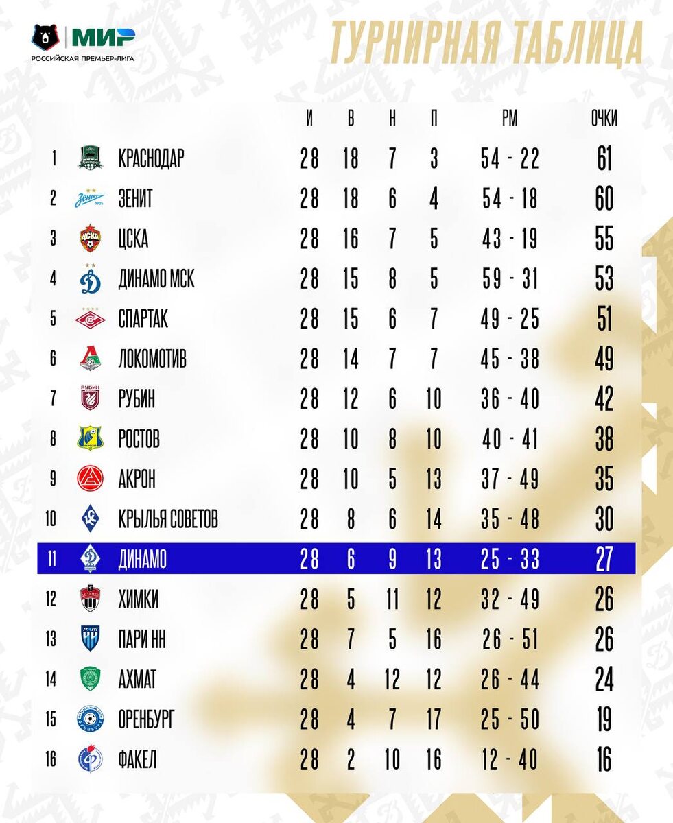 Турнирная таблица за два тура до конца чемпионата #МирРПЛ