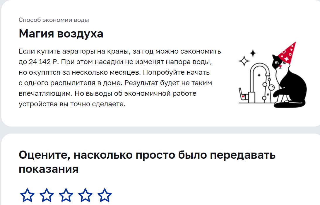 После передачи данных со счётчиков холодной и горячей воды мне на сайте mos.ru было предложено на том же сайте купить аэраторы на краны чтобы за год сэкономить до 24.142 руб. Было обещано, что насадки окупятся за несколько месяцев, при этом не изменят напора воды. Весь этот текст вызвал одно лишь сплошное недоумение. В советское время как-то все мы обходились без аэраторов на кранах, при этом заводу платили копейки. Это и понятно, мы же не в пустыне Сахаре живём, а в России, изобилующей водными ресурсами. К счастью у нас с водой проблем нет в плане объёмов. О какой экономии благодаря аэраторам до 24.142 руб они говорят? Даже если я в принципе не буду выключать воду в кранах, за год не должно быть такой астрономической суммы, а здесь речь идёт только об экономии на эту сумму. Это просто в голове не укладывается. Посмотрел платёжку ЖКХ, при максимальной экономии, если водой практически совсем не пользоваться, а для чая и приготовления пищи использовать только бутилированную покупную, то