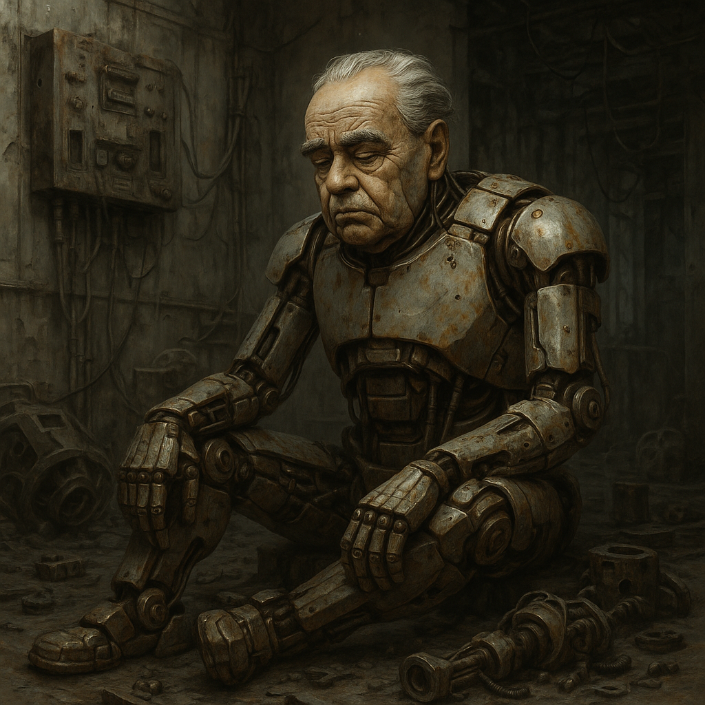 - Какой энергичный пожилой человек… - молвил безучастным голосом уже роботизированный лекарь, глядя на грызущего угол металлического стола бородатого мудреца.