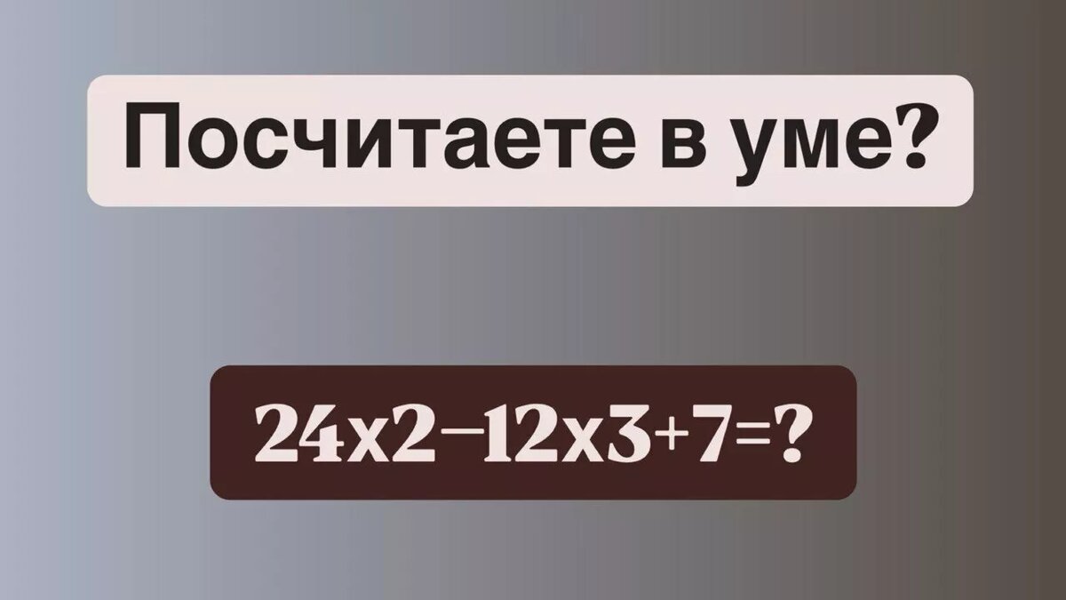 Перед вами пример: 24×2−12×3+7, который нужно посчитать без помощи калькулятора. Все вычисления необходимо произвести в уме.