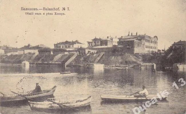 Бабушка рассказывала семейную легенду о том, как балашовские купцы Туркины разбогатели. Якобы, какой-то совсем дальний предок был лодочником, перевозил через Хопёр. В один день к нему подошли жандарм и женщина с сундуком и попросили их перевезти на другой берег. Когда они были на середине реки, жандарм выкинул женщину за борт. Тогда мой предок выкинул из лодки и жандарма. Жандарм, правда, сопротивлялся. но предок оказался сильнее. А сундук остался в лодке. В нём оказалась довольно крупная сумма денег, позволившая открыть своё дело. И, в свете недавнего открытия про турка я всё думаю - может, в этой истории есть какая-то крупица правды? Уж больно быстро человек поднялся в чужой стране из, фактически, раба в купцы. Открытка с видом переправы через Хопер, с сайта oldsaratov.ru