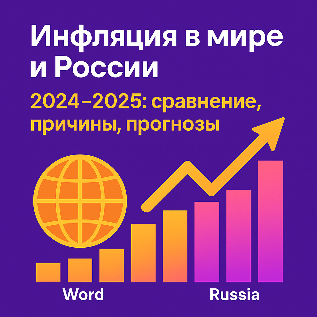К началу 2024 года мировая экономика наконец-то начала видеть замедление роста цен. Центральные банки повышали ставки, налаживались цепочки поставок, дешевели энергия и продовольствие. Однако в России тренд оказался другим: инфляция, немного поутихшая в 2023 году, снова ускорилась к концу года. В этой статье простыми словами сравниваем инфляцию в мире и в России, объясняем причины различий и заглядываем в перспективы до конца 2025 года. Также поясним виды инфляции: потребительская (CPI) – общий индекс цен для потребителей, базовая – без учета волатильных цен (например, на продукты и энергоносители), и продовольственная – рост цен только на продукты питания.