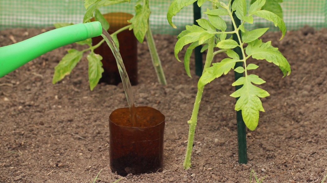 Есть простой способ реже поливать помидоры. Он помогает эффективнее использовать воду. Садоводы применяют необычный метод, который снижает испарение воды, укрепляет корневую систему и защищает растения от болезней. И что самое приятное — это решение абсолютно бесплатно. А результаты видны уже через несколько дней. Выращивание томатов требует регулярных и обильных поливов, особенно в жаркую погоду. Эти растения требуют много воды, потому что их поверхностная корневая система не выдерживает засухи. Многие поливают томаты поверхностно, выливая воду прямо на землю или даже на листья. В итоге большая часть влаги испаряется, не доходя до корней. Высокая влажность воздуха способствует развитию грибковых заболеваний, таких как картофельная гниль. Чтобы решить эту проблему, нужно всего лишь срезать дно пластиковой бутылки, например, из-под минеральной воды, открутить пробку или сделать в ней несколько отверстий. Затем закопайте бутылку вверх дном рядом с растением на глубину около 15-20 см. В