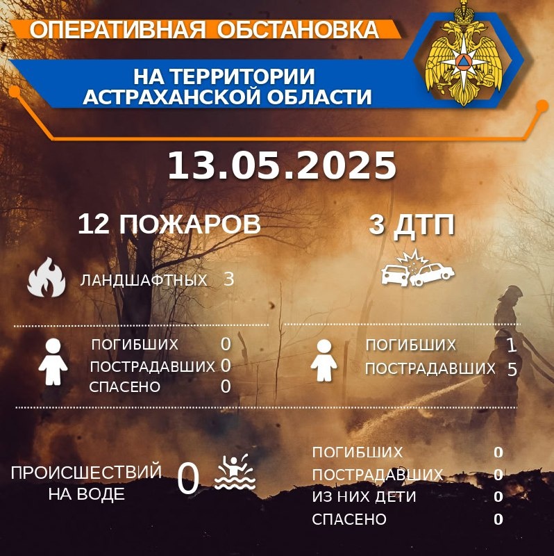 🚨Оперативная обстановка на территории Астраханской области по состоянию на 00:00 13.05.2025