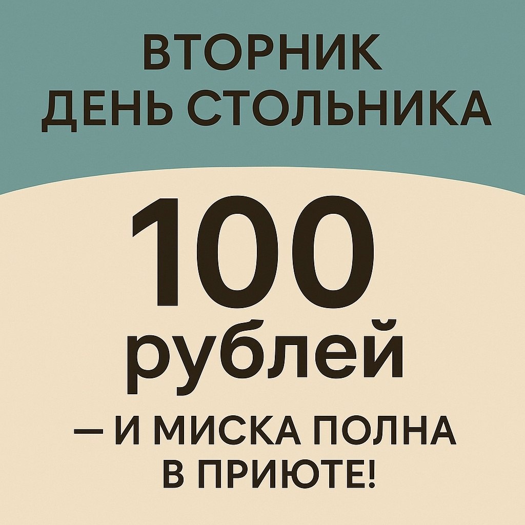 Каждый вторник мы запускаем простую, но очень важную акцию: всего 100 рублей — и вы наполняете одну миску для наших подопечных