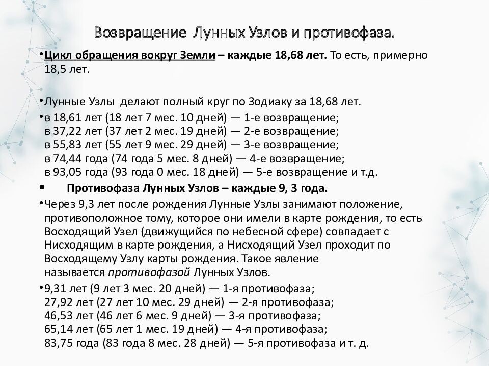 Редко можно встретить, когда основной запрос в карте реализуется до первого возвращения Сатурна, либо второй противофазы ЛУ, а порой и до второго возвращения узлов.