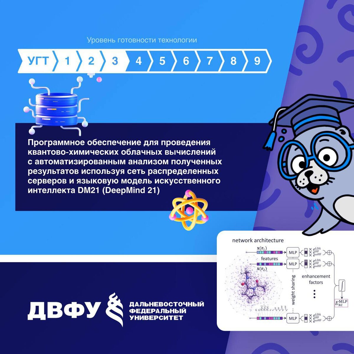 Одна из разработок ученых ДВФУ — программное обеспечение для проведения квантово-химических облачных вычислений с автоматизированным анализом полученных результатов с использованием сети распределенных серверов и языковую модель искусственного интелпекта DM21. Квантово-химические расчёты — это одна из самых ресурсоёмких задач, которую только может выполнить современный компьютер🧑💻 В последние годы математики и физики пытались усхорить вычисления, используя два разных подхода: 👉в первом подходе предполагается, что расчеты должны проводиться с помощью квантовых компьютеров 👉во втором — с использованием нейронных сетей и системы облачных вычислений (сети распределенных серверов) Каждый из этих подходов в той или иной степени требует создания программ как управления вычислительными задачами, так и визуализации полученных результатов. Разработка ученых ДВФУ позволит решить обе эти задачи, а значит учёные и инженеры смогут тратить меньше времени на рутину и больше — на открытия.